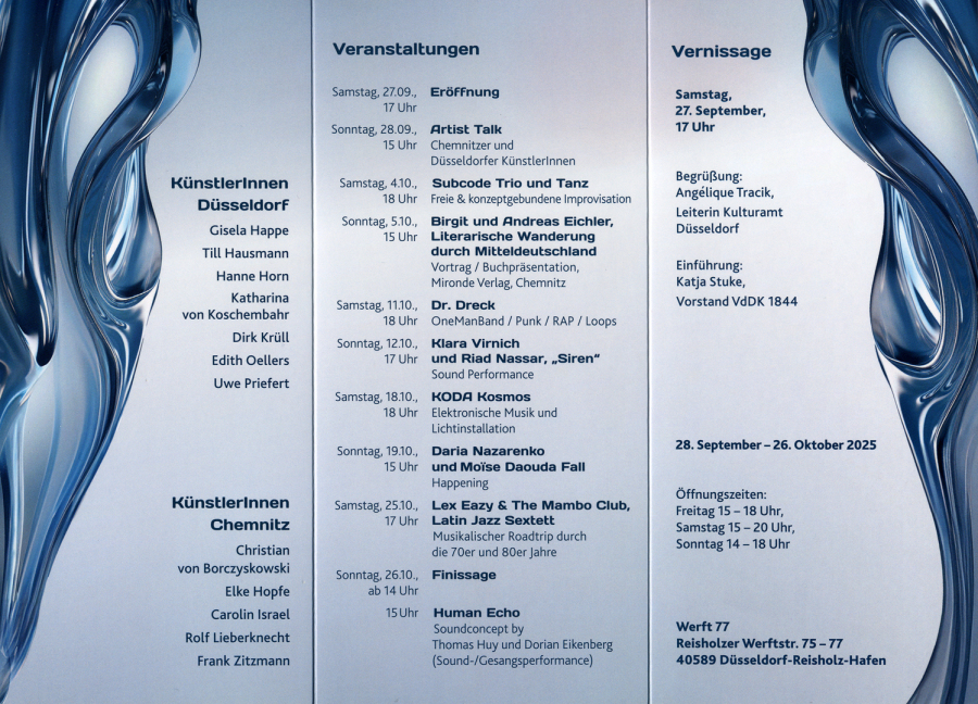 am Wochenende des 13. und 14. Septembers im südlichen Düsseldorf sowie am 20. und 21. Septembers im nördlichen Düsseldorf ihre Ateliers für kulturinteressierte Besucher*innen. In diesem Jahr